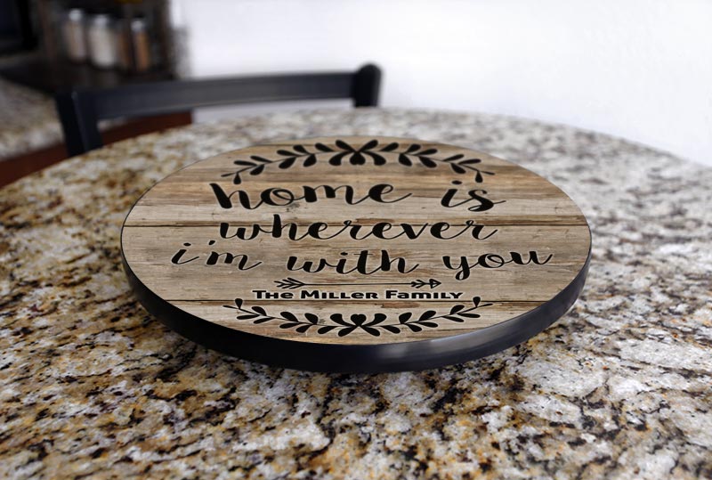 Looking to attract more attention to your dining area or kitchen? Looking for the perfect gift idea for your spouse, or for another family member or friend? You can personalize a wooden table top Lazy Susan and surprise everyone! Made out of Baltic birch wood right here in the USA, our table top Lazy Susans are the perfect way to add more fun to your home.