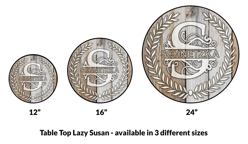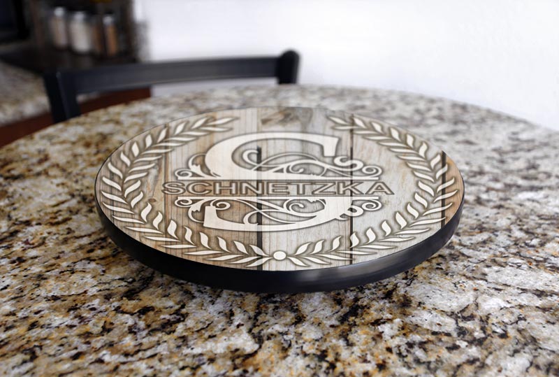 Looking to attract more attention to your dining area or kitchen? Looking for the perfect gift idea for your spouse, or for another family member or friend? You can personalize a wooden table top Lazy Susan and surprise everyone! Made out of Baltic birch wood right here in the USA, our table top Lazy Susans are the perfect way to add more fun to your home.