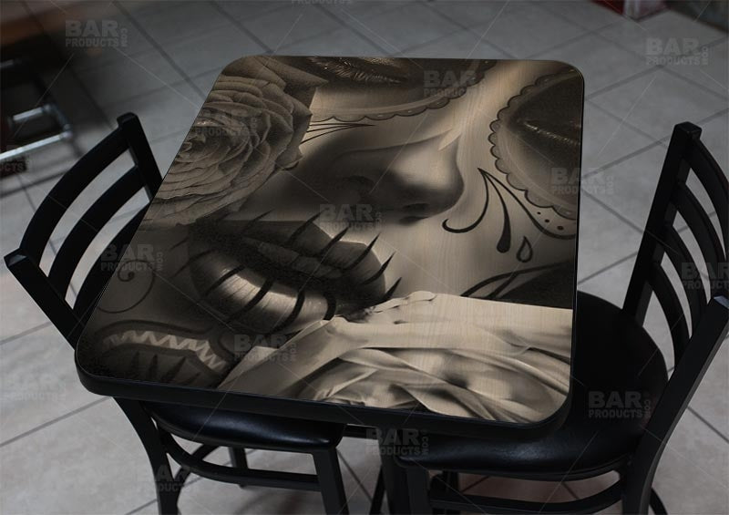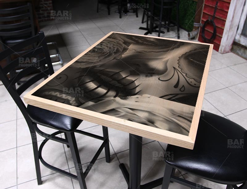 The Amor Eterno 24" x 30" Table Top features the beautiful art of Daniel Esparza, one of many Featured Artists here on BarProducts.com. Click here to see more Featured Artists.