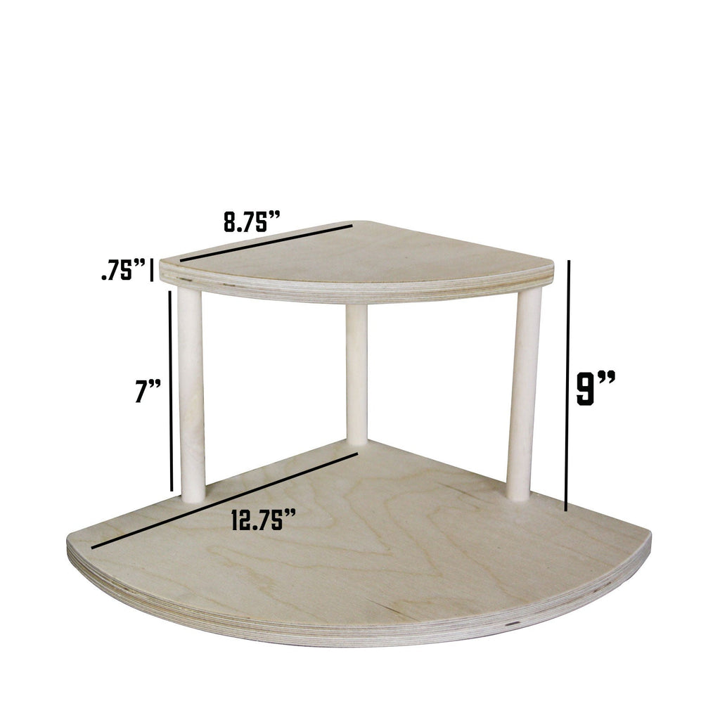 • Length: 12.75" for the bottom shelf and 8.75" for the top.