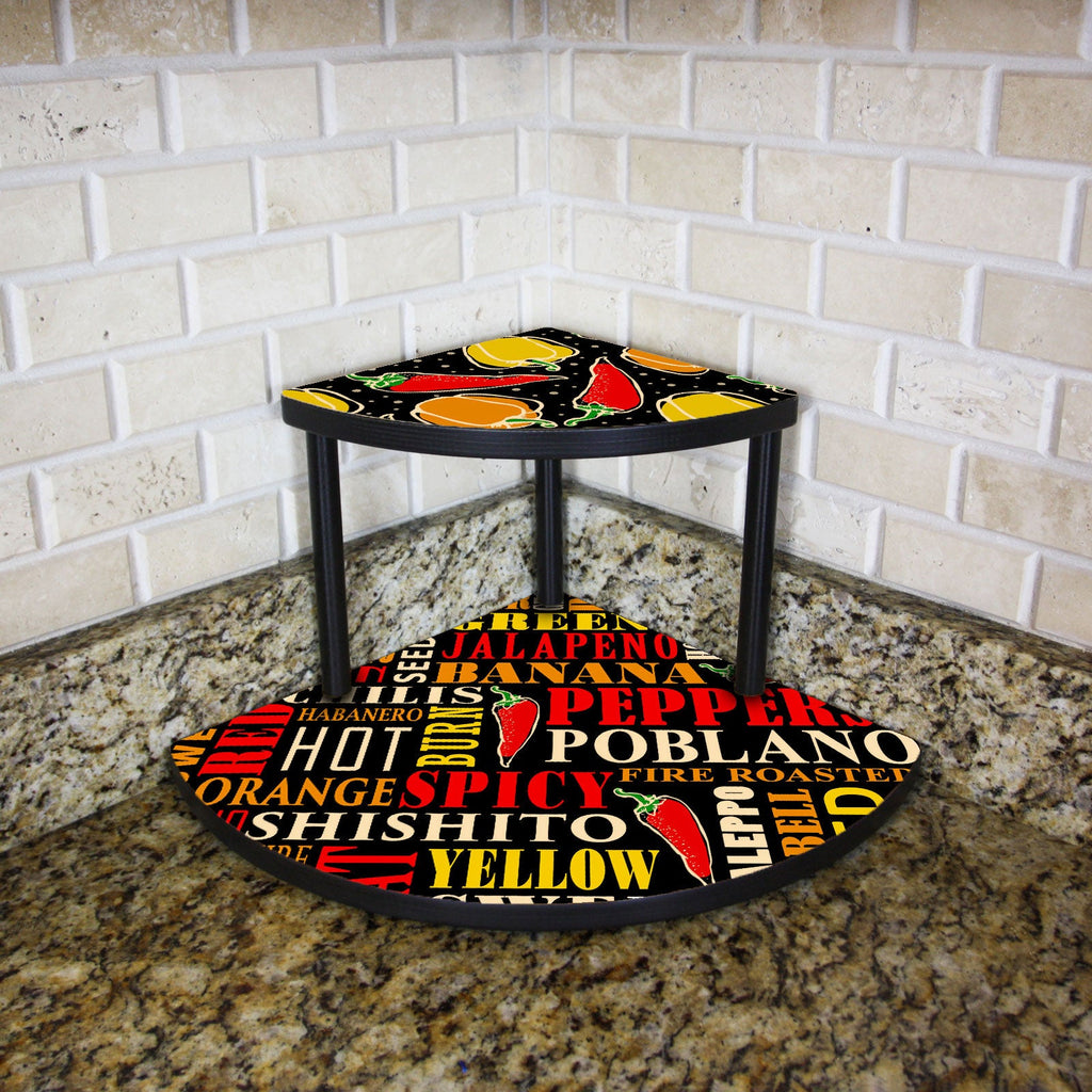These 2-tier shelves are designed to fit perfectly underneath your kitchen cabinets, while still being able to easily access common spices and ingredients. They are handcrafted in the USA, right here in our very own bar products woodshop. Our counter caddy shelves are constructed from durable baltic birch wood, with 3 secure dowel rods. The pepper collage finish is easy to clean and each shelf is sold with rubber feet on the bottom, giving the bottom shelf a bit of space from your counter to help protect it from scratches and bacteria build-up.