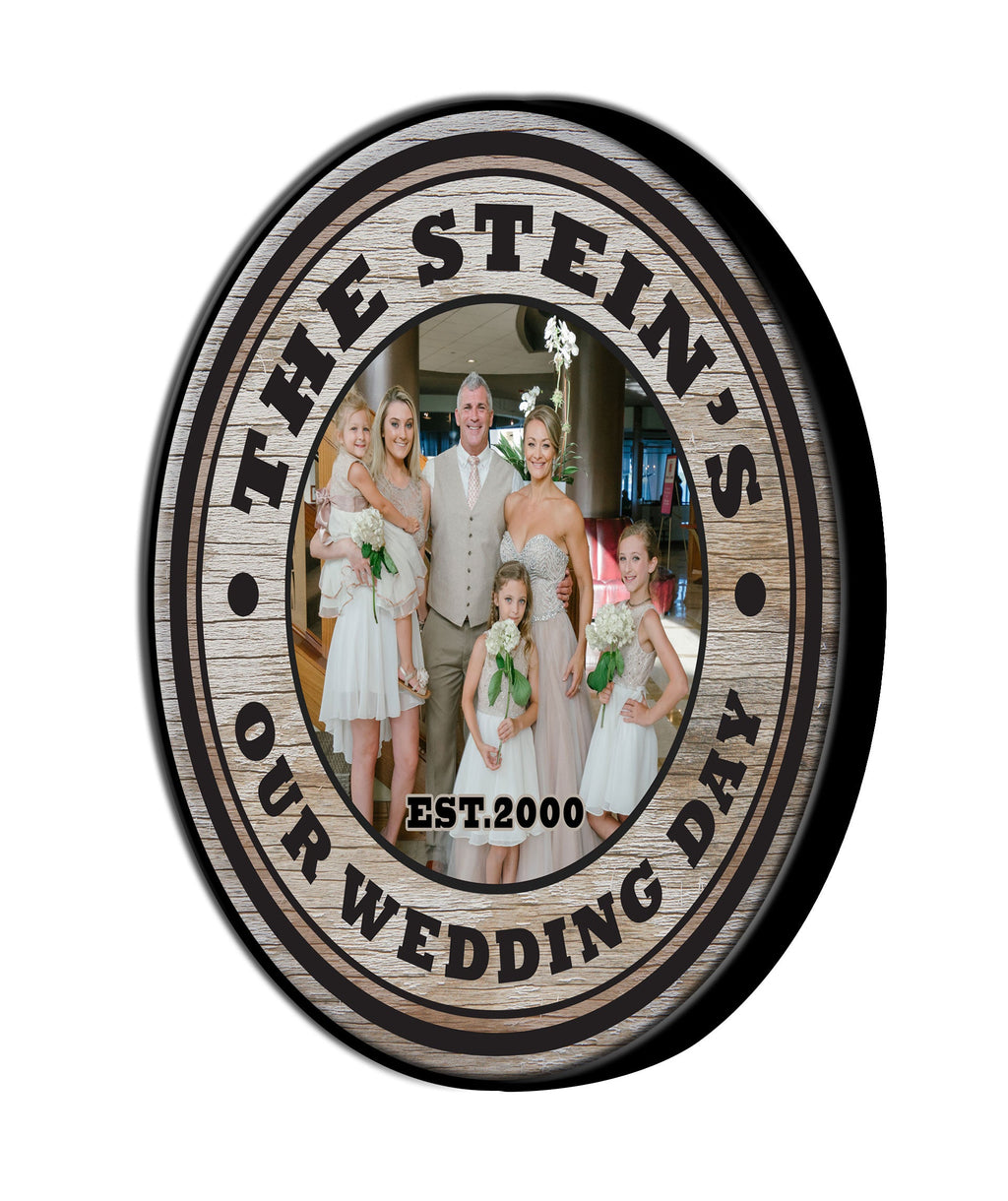 This customizable Barrel Top Sign is the perfect decor for any home! This "Wedding" Design is great for a special holiday gift as well! We have also left a space for you to customize this sign and really make it your own! Add your family name, bar name, favorite saying, or anything you would like. Barrel top signs are hand crafted by skilled artisans and make great birthday, holiday, or house warming presents!