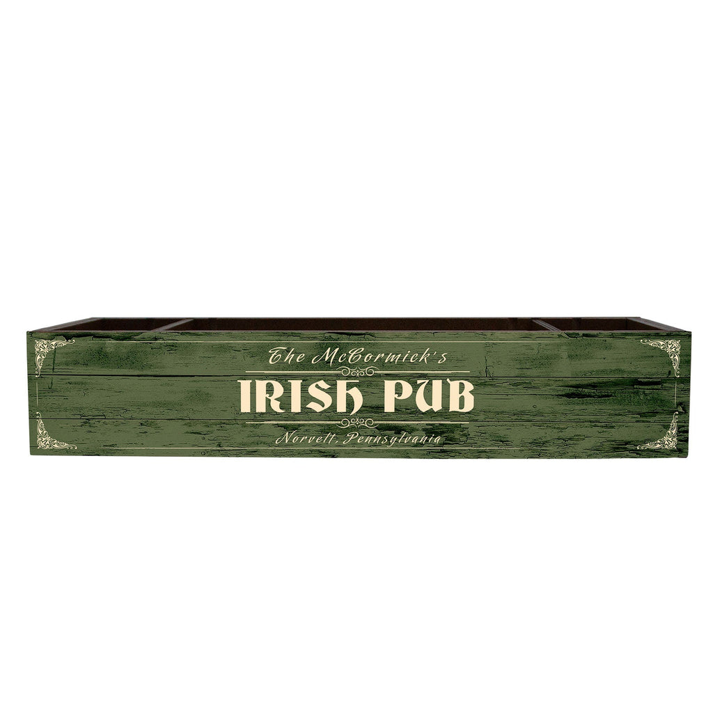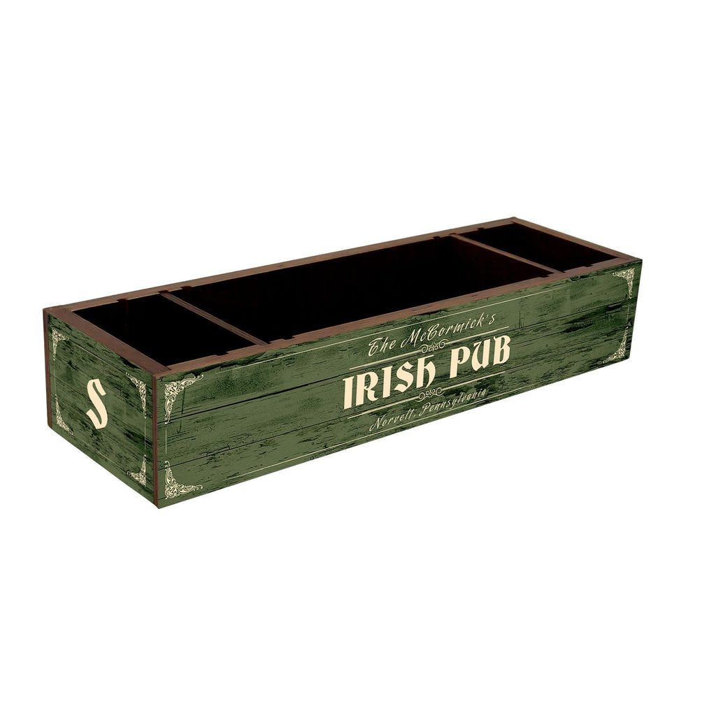 Bring convenience to your kitchen with this handcrafted Wooden Condiment Caddy! This caddy boasts three adjustable compartments for all your toppings and promises long-term efficiency. This custom "Irish Pub" template design is perfect for the cooking enthusiast. What a great gift idea as well!