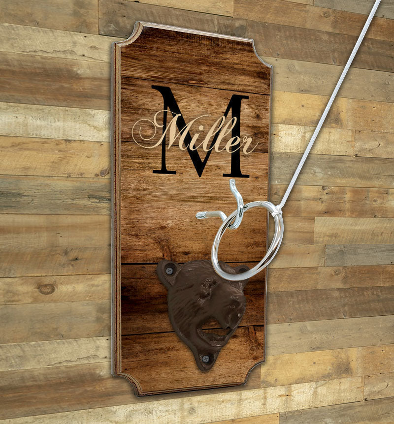 CUSTOMIZABLE Wall Mounted Ring Toss Game with Bottle Opener - Name Monogram
