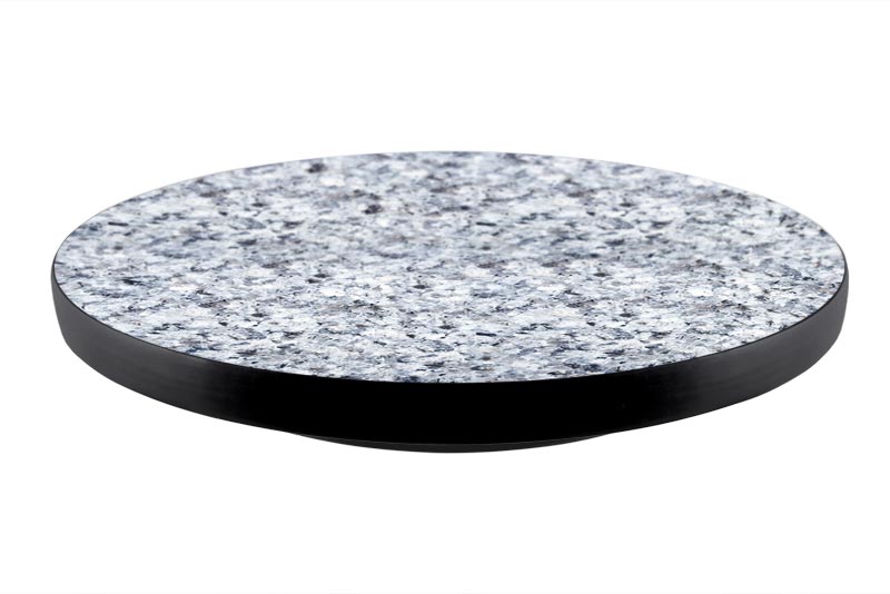 These beautiful Lazy Susans are 3/4" thick, and come in three different sizes, 12", 16", and 24", meaning there's a size available for any table or counter space. The round base is sturdy, and the spinning mechanism is well-built and allows for smooth, easy spinning, and featured 4 rubber stoppers that protect your table top from wood scraping. The Lazy Susan is wrapped with rubber black T-molding that protects the side of the all-natural wood top.