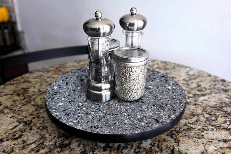- 3/4" black T-molding wraps around Lazy Susan and protects edge