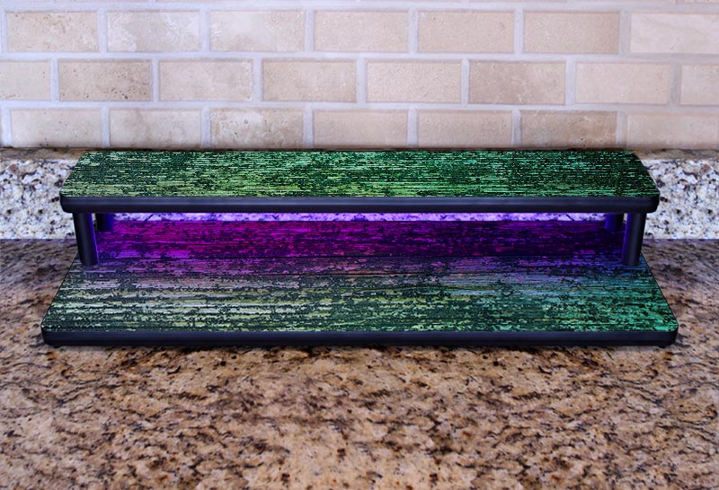 We updated our popular Counter Caddies™ by adding LED lighting! Spice up your kitchen with these attention-grabbing LED counter caddy shelves. Show off your tequila or bourbon bottles, showcase your collection of unique shot glasses and other glassware, or just add some flair to your spice rack! The potential is endless.