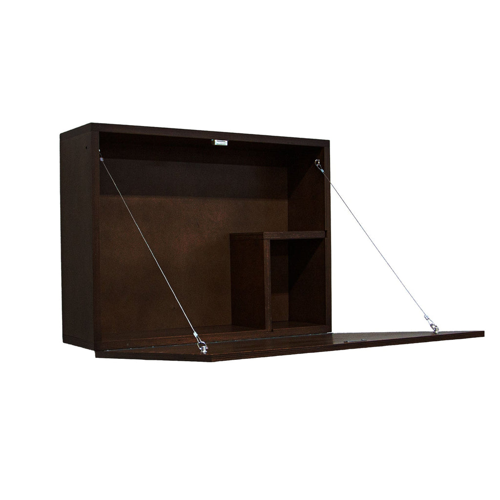 When you are ready to use your bar, simply unlatch and open the door to create a bar top area. It is designed with a stainless steel gas shock, allowing for a smooth resistance when opening. But wait! The best part is the contents inside your Murphy WalBAR™! Featuring a compartment inside that is a removable shelf.