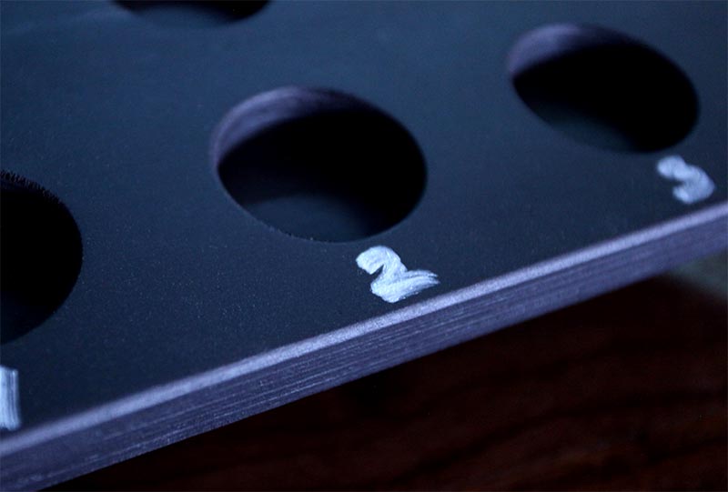 This unique paddle is a fun new way to serve guests samples of shots, beers, liquor, shooters, and more! This 17.5 inch wooden tasting flight paddle is completely covered in chalkboard paint, meaning you can write whatever you wish on the paddle. You can also have the customer write on it. The predrilled holes are 1 5'8" in diameter.
