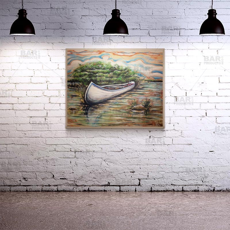 The Canoe 24" x 30" Wood Table Top features the beautiful art of Brian Mohr, one of many Featured Artists here on BarProducts.com. Click here to see more Featured Artists.