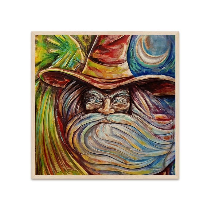 Available in either a Natural Wood background or a White background. The texture of the wood shines in the Natural Wood option, while the whites from the art are more vivid with the White option.
