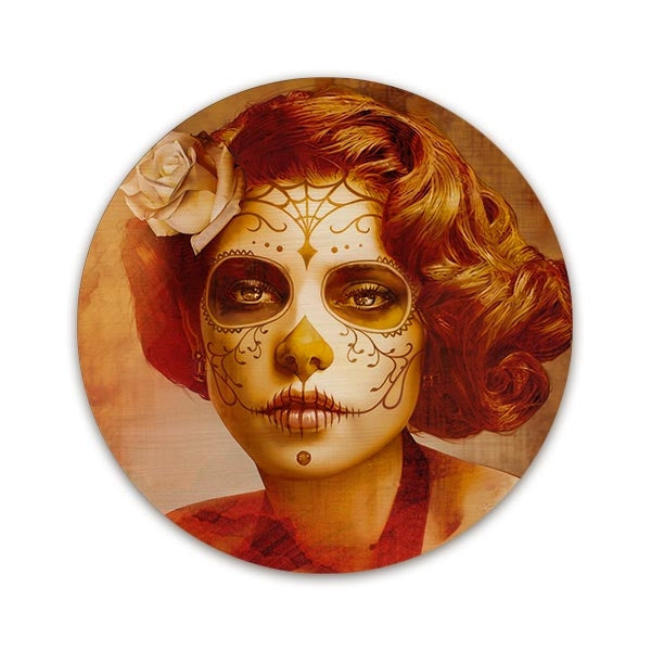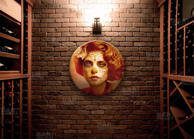 The Vendimilla Belleza Round Table Top features the beautiful art of Daniel Esparza, one of many Featured Artists here on BarProducts.com. Click here to see more Featured Artists.