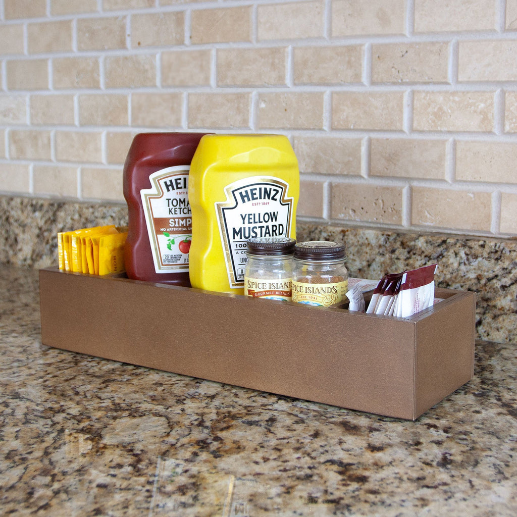 Bring convenience to your kitchen with this handcrafted Wooden Condiment Caddy! This caddy boasts three adjustable compartments for all your toppings and promises long-term efficiency. This elegant stain finish is perfect for your kitchen's aesthetic. What a great gift idea as well!