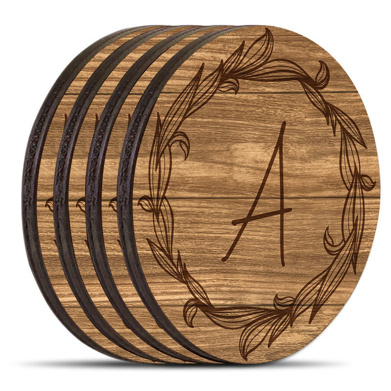 Looking for a non-disposable coaster solution that will look phenomenal displayed on your bar or table tops? How about one that is easily customizable and showcases multiple trendy "Floral Monogram" design themes? These custom wood coasters are just what you've been looking for! Handcrafted in the USA, these high-quality coasters allow for full-color design while featuring a rustic wood element. Very easy to customize, simply type in your text, pick your design, and we do the rest! These coasters also make for a great gift idea! 4-inch round shape. Sold in packs of 4 with a wooden coaster caddy add-on option.