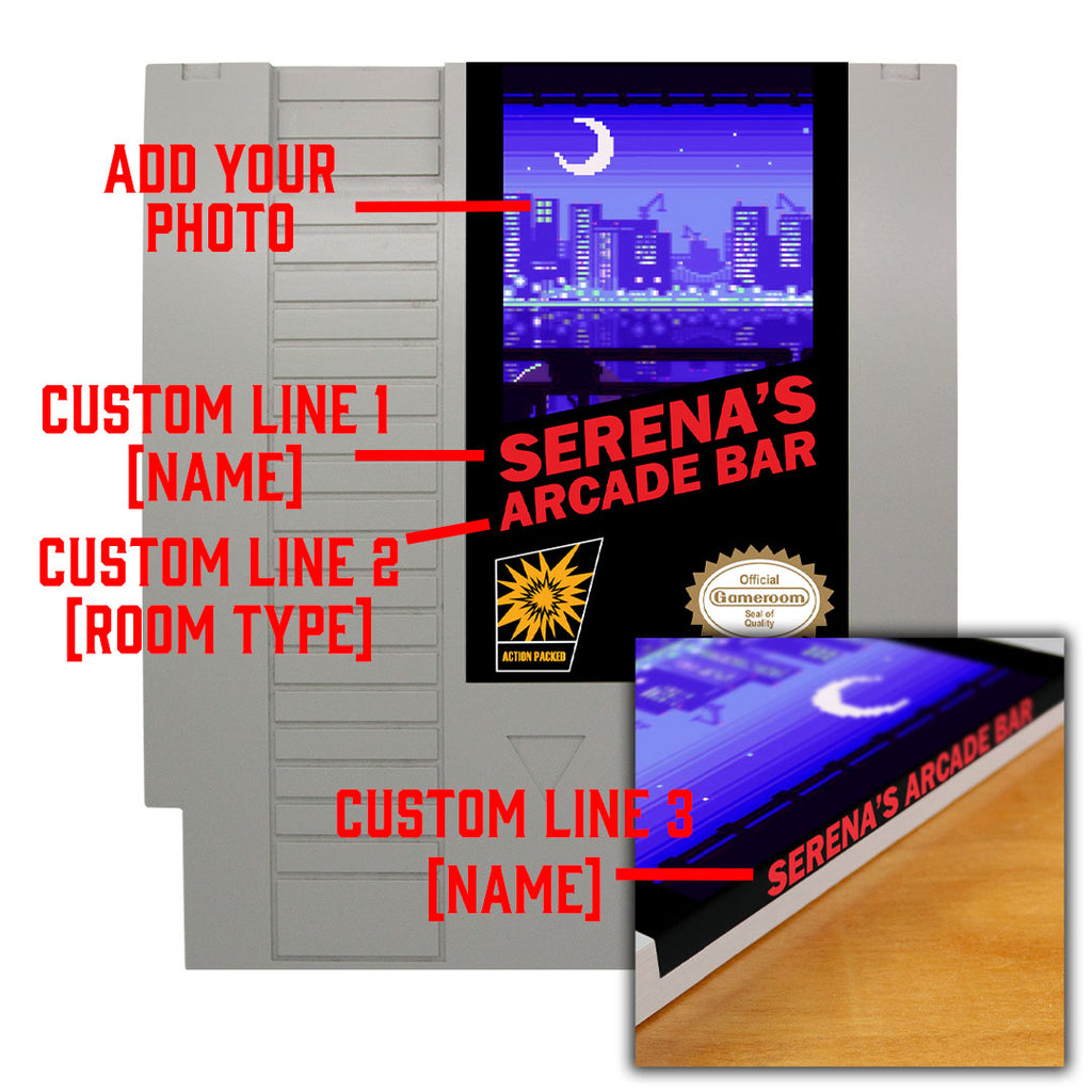 Transform any room into a vibrant, exciting space with this Classic Game Cartridge Wooden Tabletop. Handcrafted from the sturdiest of wood, this extraordinary tabletop features a 'classic game cartridge' inlay for a personalized touch. Perfect for the gaming fan in your life, this stunning wooden tabletop is sure to become a treasured piece. These are easily customizable with your very own name and personalization! Simply type in your text and add your photo, then we do the rest!